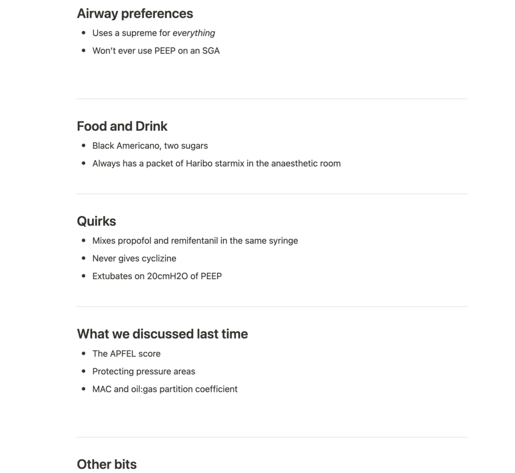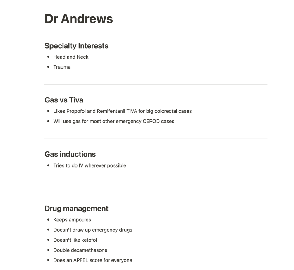 It’s easy to forget how each consultant likes to do things, how they manage their drugs and equipment, and what you talked about last time you worked together.