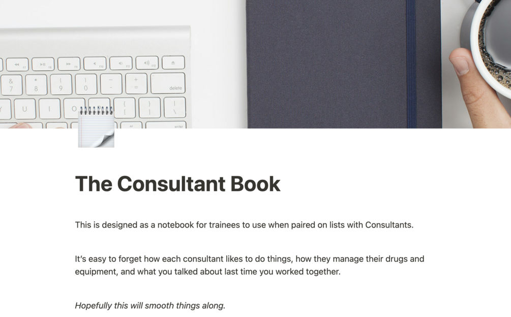 This is designed as a notebook for trainees to use when paired on lists with Consultants.